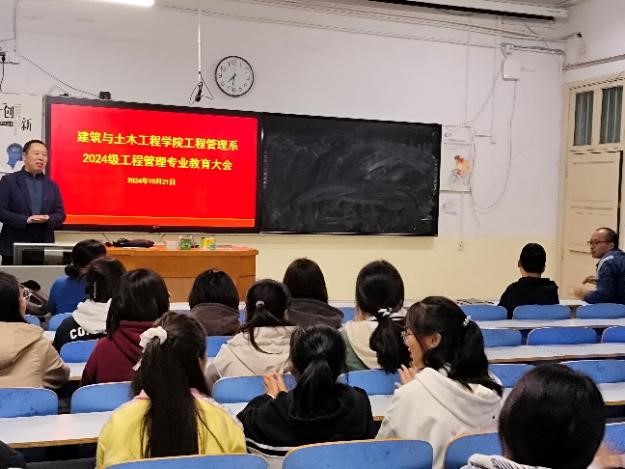 10月21日晚,工程管理系在J3-312教室举行了工程管理专业新生入学教育活动。学院党委副书记王凯、工程管理系主任张宗领、系内部分教师代表以及全体工程管理专业新生参加了活动。张宗领详细介绍了工程管理系的师资力量、办公地点、BIM中心、学科竞赛、考研情况以及学院为同学们考研提供的支持服务,并对新生提出了具体建议。教师代表们分别从专业内涵、专业前景、课程设置、学习方法及考研准备等方面进行了详细阐述,鼓励学生努力学好专业知识。在师生交流互动环节,老师们耐心解答了同学们的提问。最后,王凯结合亲身经历,分享了励志故事,激励同学们树立专业信心,并提出了“三个主动”要求:主动学习,将学习从外在任务变为内在探索;主动沟通,积极求教以拓宽视野;主动实践,将理论与实际结合,深化自身技能。