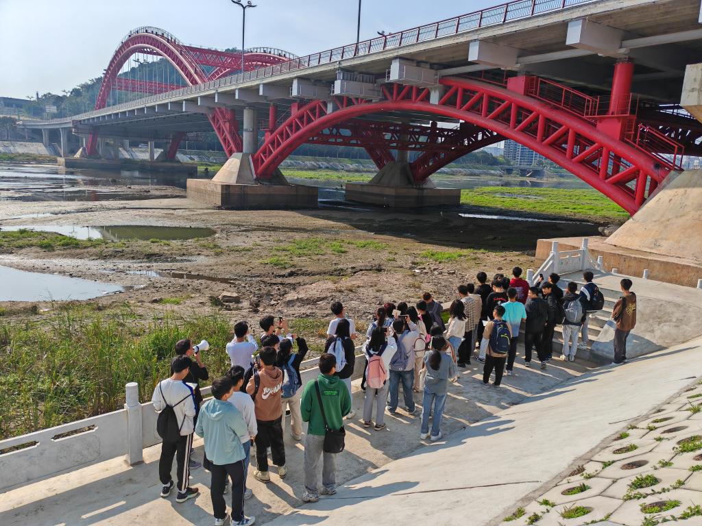 实习路线从浉河的下游到上游,依次经过琵琶台琴桥、十八大街高架跨浉河桥、民桥、申桥、浉河公园桥、彩虹桥、二号新桥及沿线道路,在实习中,指导教师们向学生们介绍了各个桥梁的设计理念、施工技术以及相关工程实践经验。学生们跟随指导教师一起走访实地,观察桥梁结构、道路规划等,深入理解和体验真实工程实践的复杂性和多样性。参与实习的学生们纷纷表示,此次实习活动使他们更深入地了解了道路桥梁工程的实际应用,对专业知识也有了更为深刻的认识。