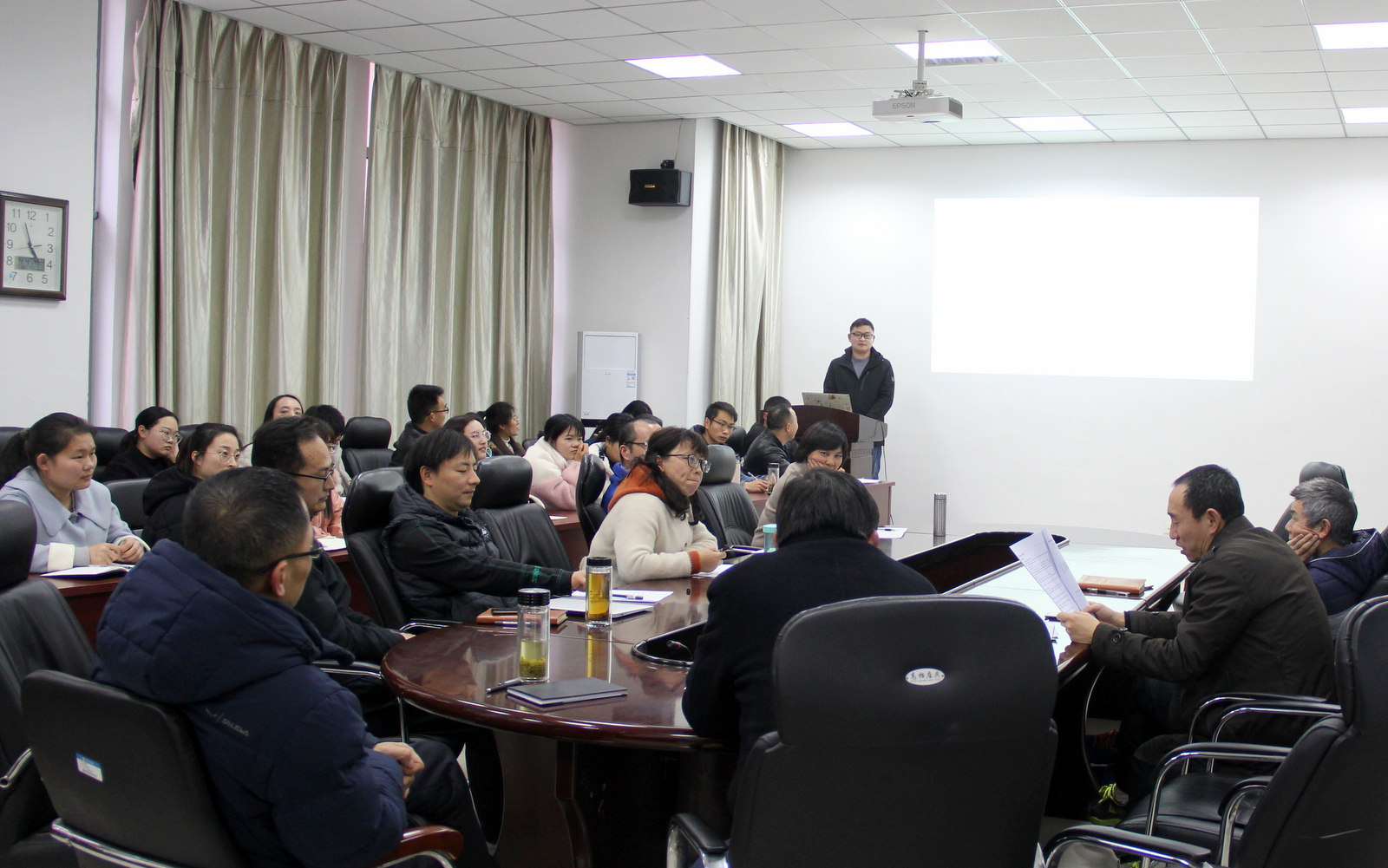 开题报告会上,同学们通过PPT的形式对拟定的毕业论文题目及主要研究内容做了详细阐述。在提问过程中,评委会成员针对开题报告中存在的问题给出了相应的建议。