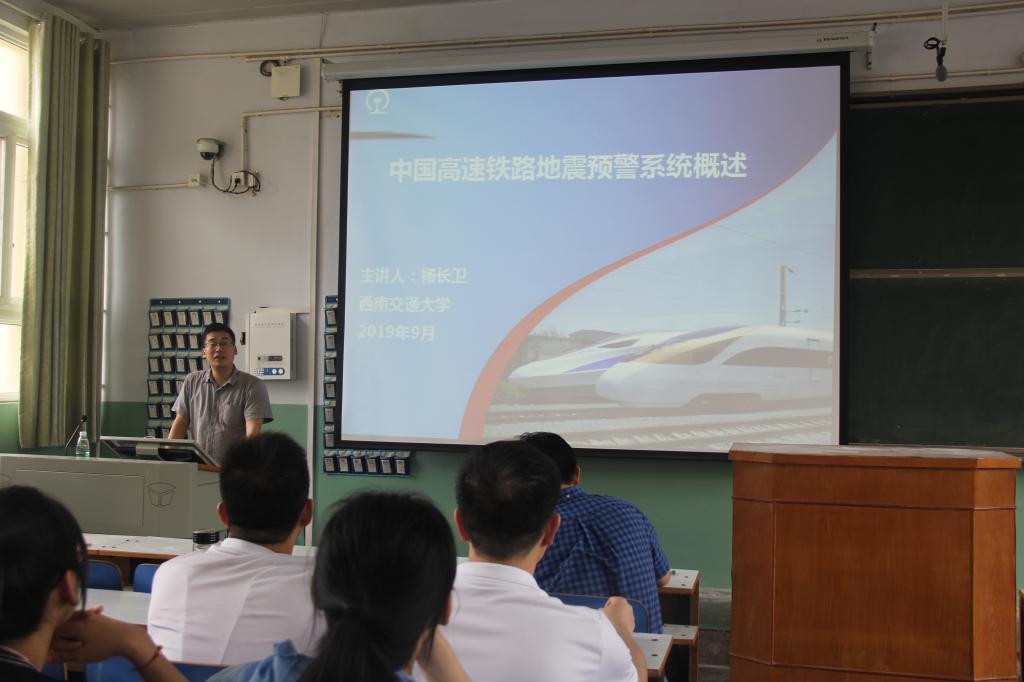 邀请,西南交通大学杨长卫博士在教2-梯5教室作了题为“中国高速铁路地震监测预警及紧急处置系统”的学术报告。学院院长高洪波、副院长周葆春、部分教师和全体研究生、部分本科生共百余人参加报告会。