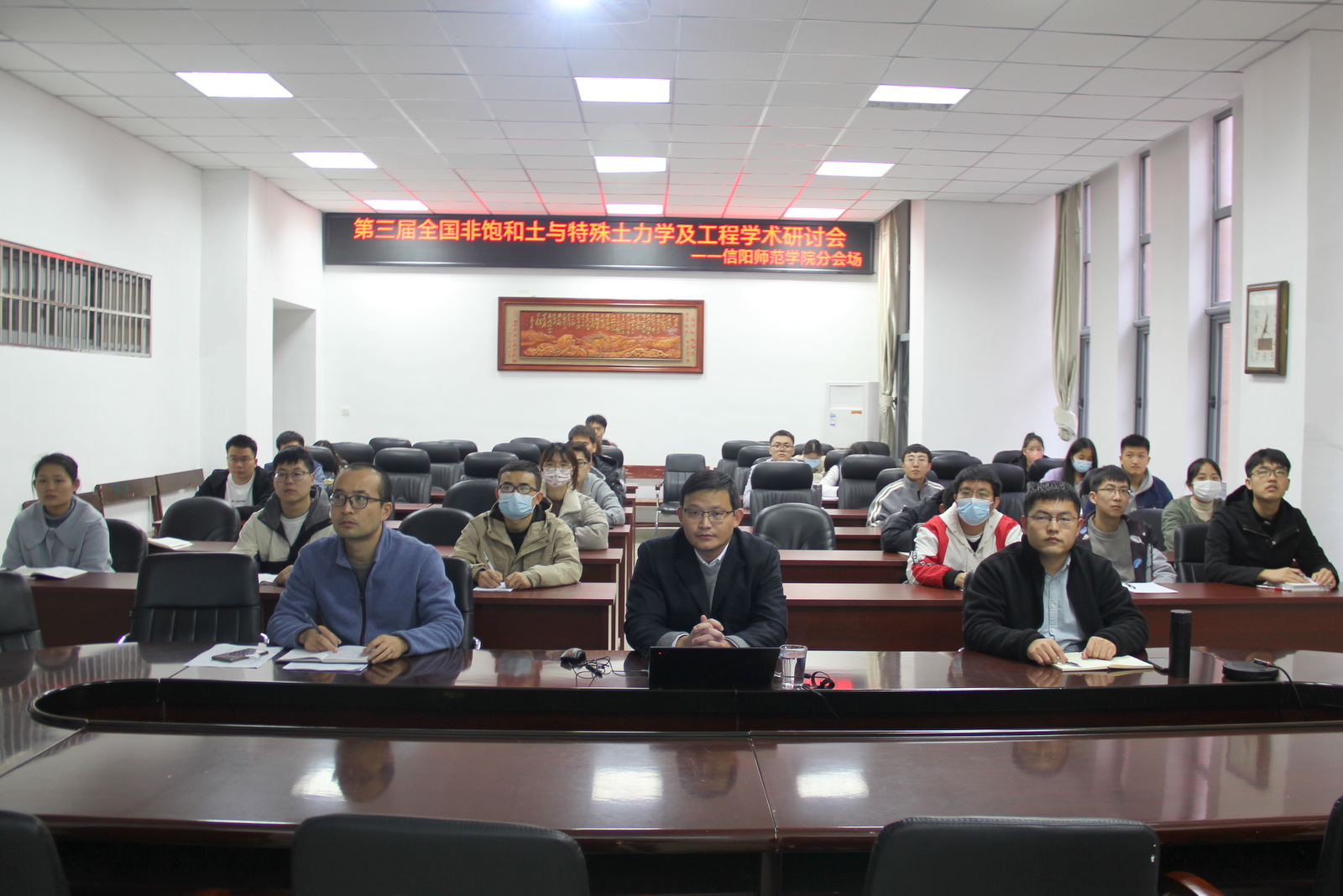 我校在木瓜视频 会议室设立了信阳师范学院分会场,分会场参会师生50余人。会议邀请木瓜视频 院长周葆春教授作了题为“基于国标试验的黏土真实缩限值确定”的特邀报告。