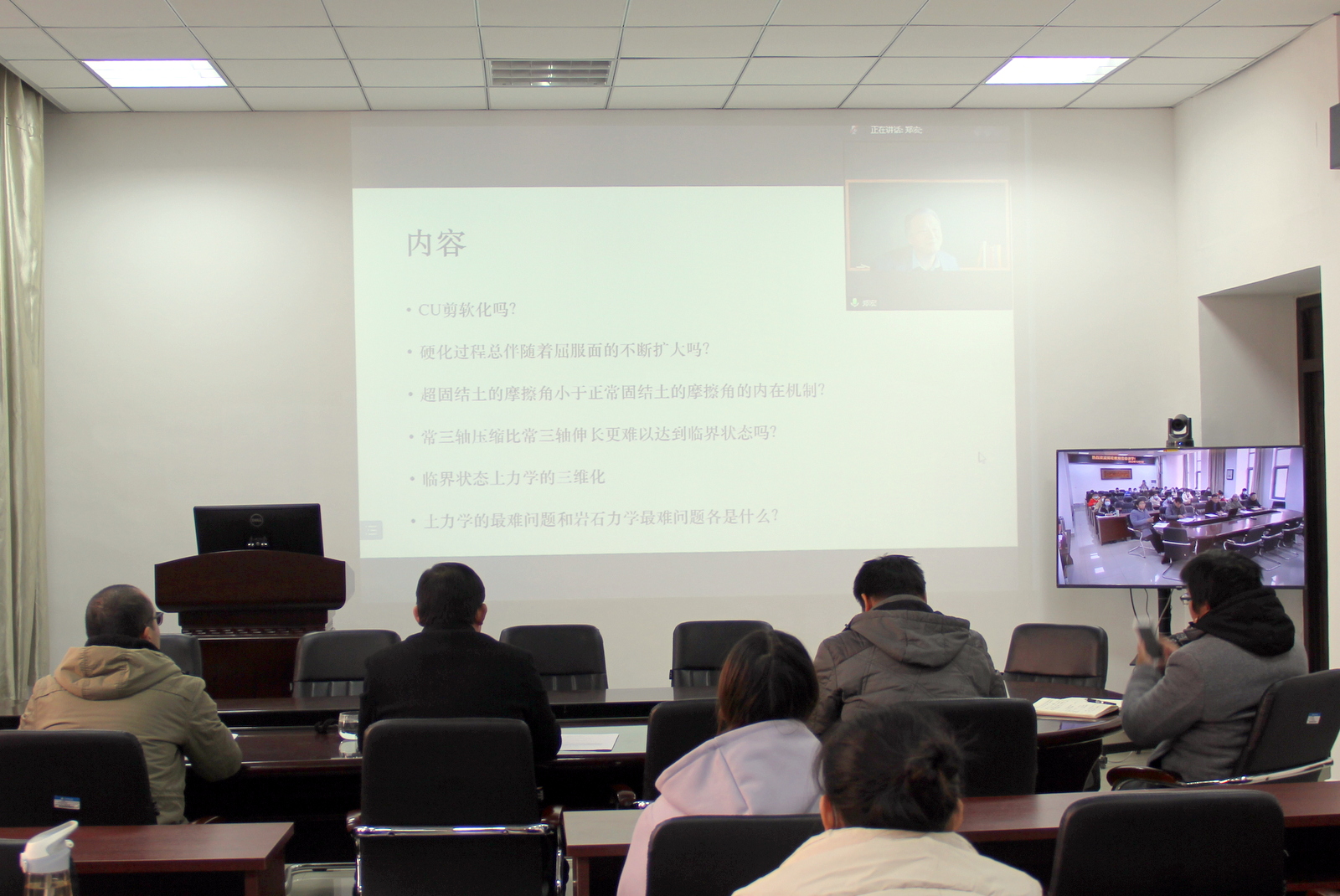 125日,应木瓜视频 邀请,北京工业大学郑宏教授通过腾讯会议平台为我院师生作了题为“土力学研习的几个心得和疑惑”的学术报告。来自北京工业大学、中科院武汉岩土所、同济大学、东南大学、哈尔滨工业大学、天津大学、北京航空航天大学、中山大学、武汉大学、中南大学、山东大学、重庆大学、河海大学、上海大学、中国地质大学、西南交通大学、南京工业大学、贵州大学、湘潭大学、华东交通大学、湖南科技大学、三峡大学、湖北工业大学、华北水利水电大学、郑州航空工业管理学院和我校等单位的300多位同行专家、博士后、博士生、硕士生共同聆听了报告。木瓜视频 院长周葆春,副院长肖琪聃,青年教师马文强、马全国、张金浩、梁维云和全体研究生参加了此次报告会,报告会由木瓜视频 院长周葆春教授主持。