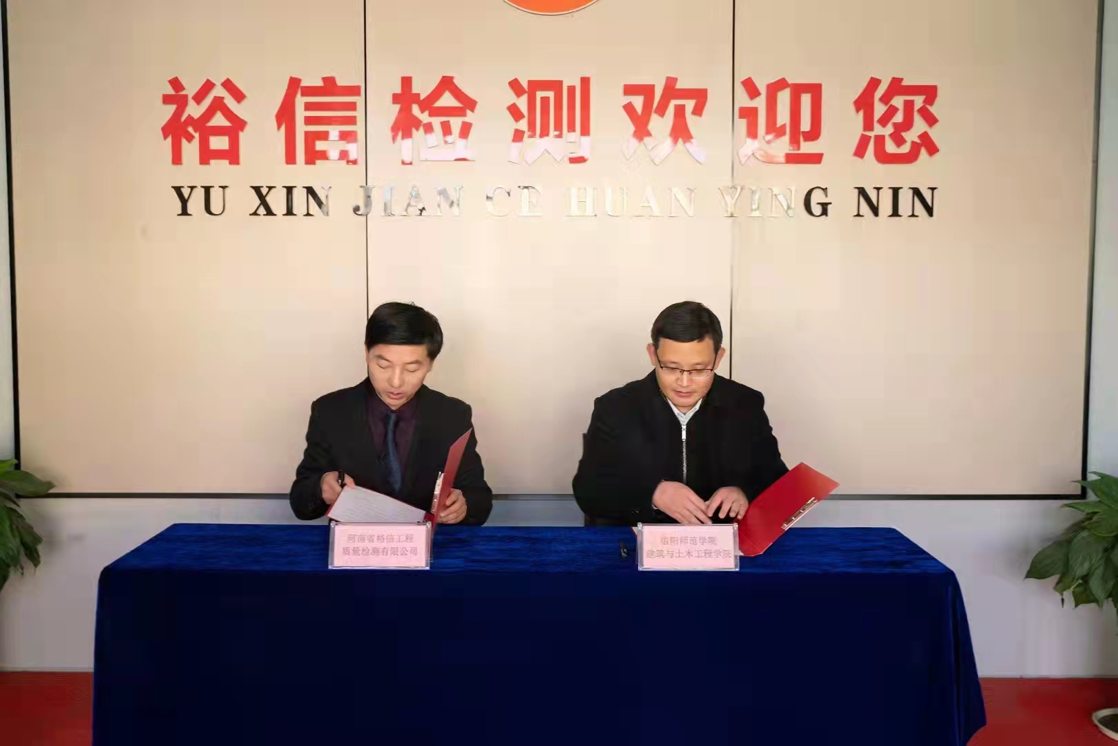 1月11日下午,木瓜视频 工程硕士专业学位研究生联合培养基地签约暨揭牌仪式在河南省裕信工程质量检测有限公司举行。