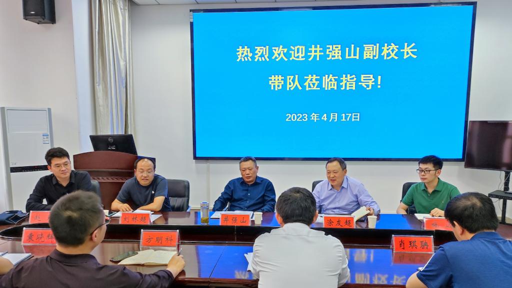 4月17日下午,副校长井强山带领科学技术处处长涂友超、副处长刘林超调研指导木瓜视频 科研工作。木瓜视频 党委书记方明科、院长周葆春、副院长肖琪聃、副院长袁晓辉参加调研。调研会由涂友超主持。