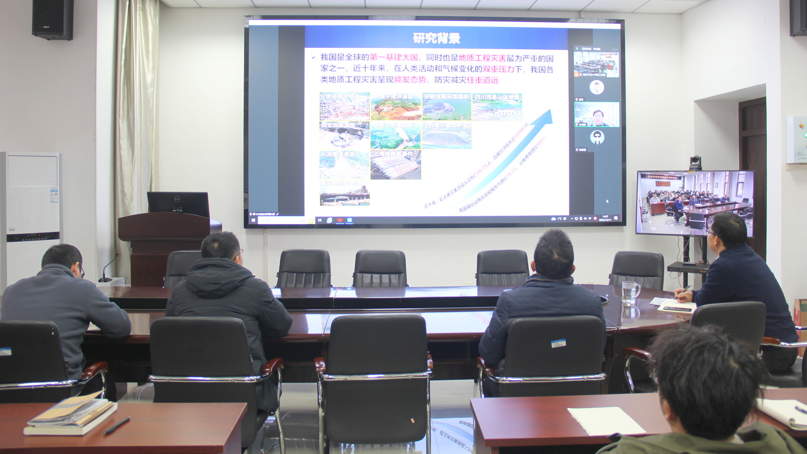 报告会上,朱鸿鹄教授以工程地质灾害防治为研究背景,首先介绍了物质点法的基本理论和算法,随后详细阐述了该方法在处理滑坡、地裂缝等地质灾害以及埋管边坡灾变演化的应用实例,指出了物质点法在应用中的优势和存在的局限,并对这一研究领域的未来发展方向进行了探讨。报告为地质工程与岩土工程数值模拟研究者和从业者提供了新的视角,同时为地质灾害防治领域的科学研究和技术创新提供了新思路。