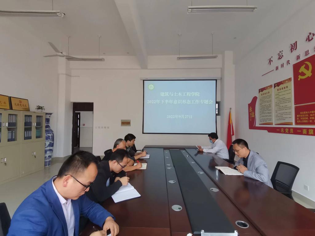 在综合实验楼402会议室召开2022年下半年意识形态工作专题会议。学院党委班子全体成员参加会议。会议由学院党委书记方明科主持。