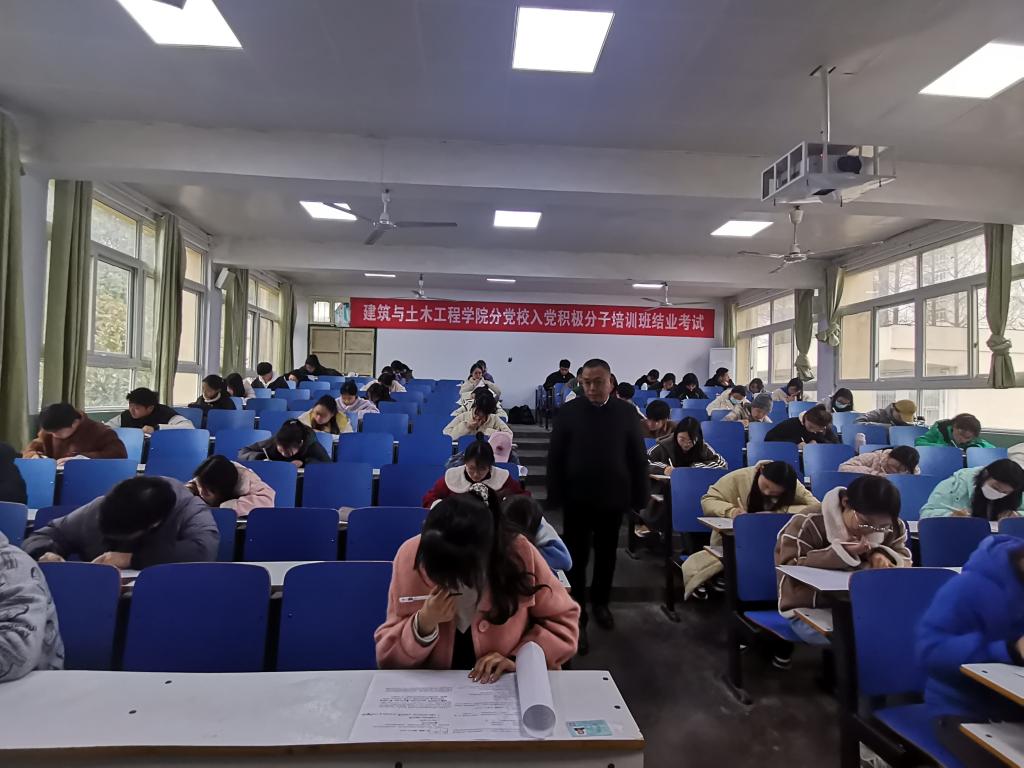 考试采取闭卷笔试答题的方式进行,内容涉及习近平新时代中国特色社会主义思想、党的二十大精神和新修订的《中国共产党章程》、党史、党员发展程序等方面,全面检验入党积极分子对党的基本知识的掌握和理解情况。题型涵盖填空、单选、多选、简答、论述五种题型。考试过程中,参训学员认真思考,仔细作答,考场秩序井然。