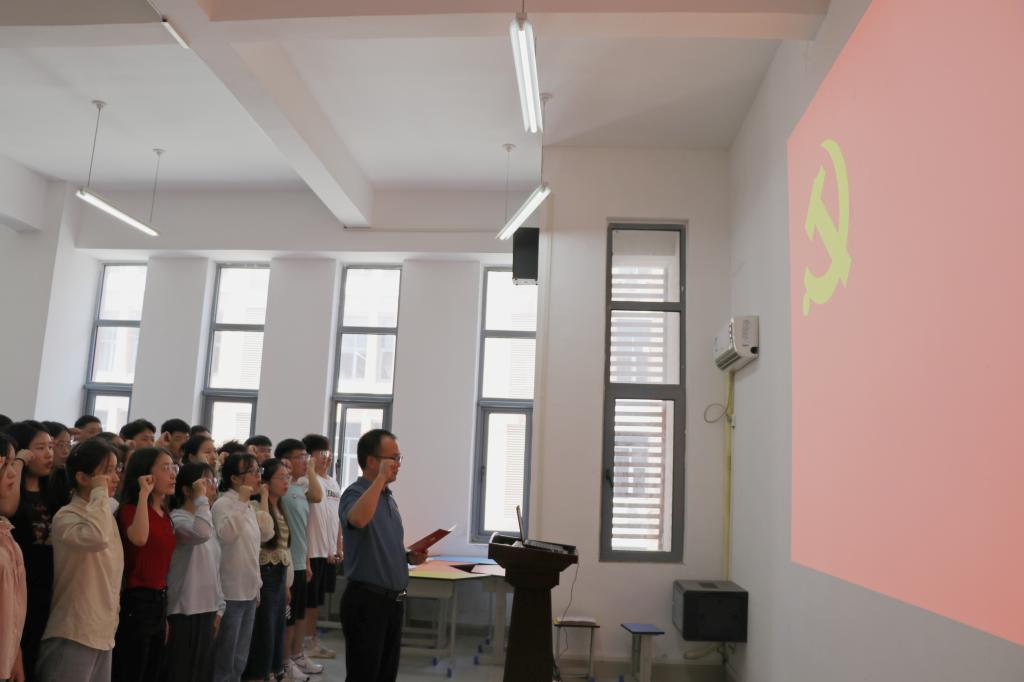 “我志愿加入中国共产党,拥护党的纲领,遵守党的章程……”全体毕业生党员在冀鹏的带领下,面向鲜红的党旗,重温入党誓词,再次向党作出庄严承诺,坚守入党初心,牢记使命担当。