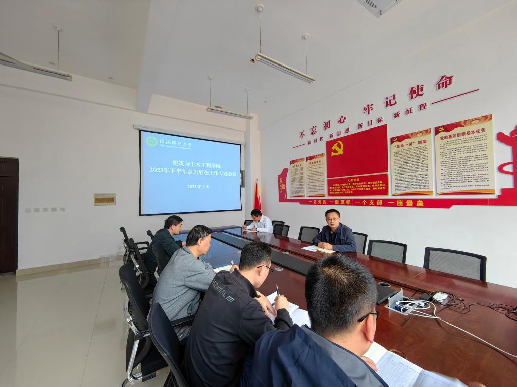 会议强调指出,意识形态工作是为国家立心、为民族立魂的工作,是党的一项极端重要工作,事关党的前途命运,事关国家长治久安,事关民族凝聚力和向心力,事关高校落实立德树人的根本任务。一是持续强化理论武装。坚持不懈用习近平新时代中国特色社会主义思想凝心铸魂,以深入开展学习贯彻习近平新时代中国特色社会主义思想主题教育为契机,筑牢师生思想政治根基。二是持续强化风险研判。树牢底线思维,增强风险意识,定期分析研判意识形态领域面临的风险,对意识形态领域潜在性、苗头性的风险有防范的先手,早发现、早预警、早行动,下好先手棋、打好主动仗。三是持续强化责任担当。严格落实意识形态工作责任制,统一思想、明确责任、完善措施、抓好落实,确保意识形态工作各项任务落地见效,提升意识形态工作质效,着力增强意识形态凝聚力和引领力,为学院高质量内涵式发展提供坚强的政治保障和强大的精神力量。