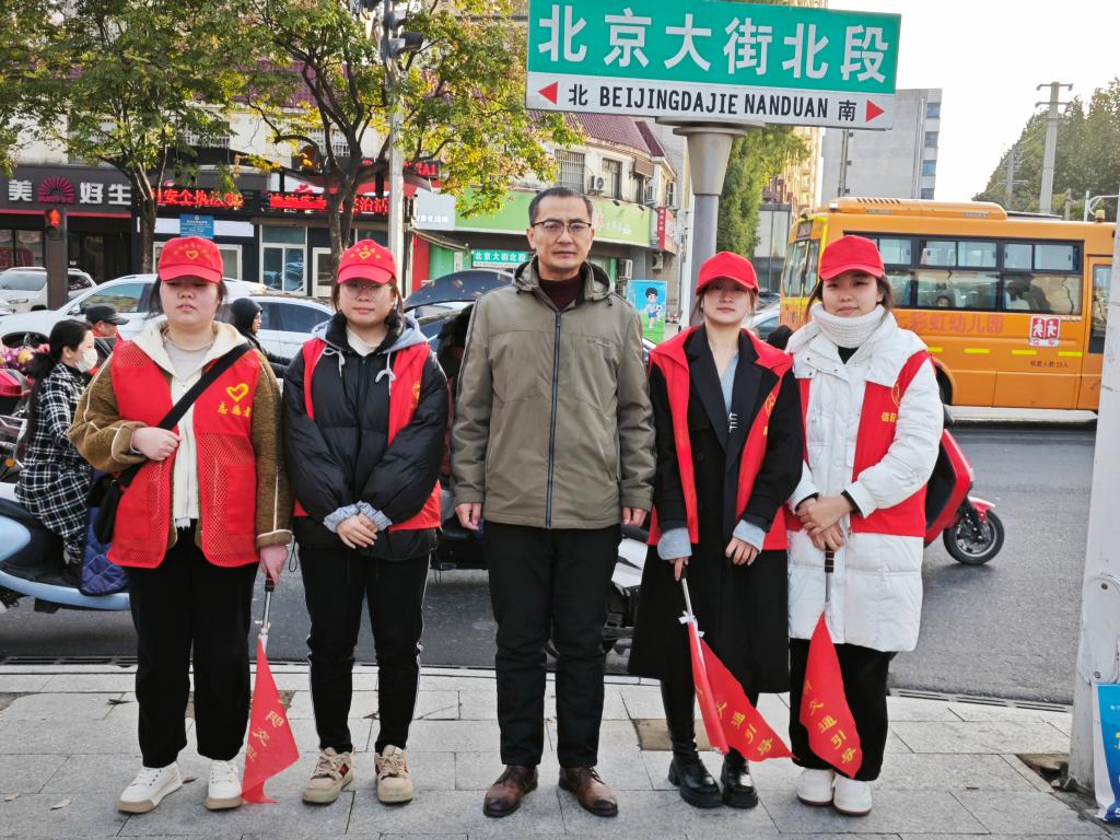 教工党支部和学生党支部联合在北京大街与长安路交叉口开展“文明创建”志愿服务活动。