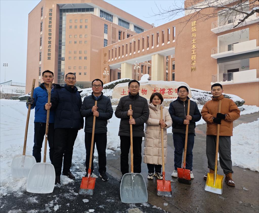 组建“党员应急志愿服务队”,在学院党委号召下,两个教师党支部的在信教师踊跃报名,党支部书记、教工党员和入党积极分子一行7人前往“支部连支部”对接社区-华森社区除雪,保障路面畅通,方便社区居民出行。