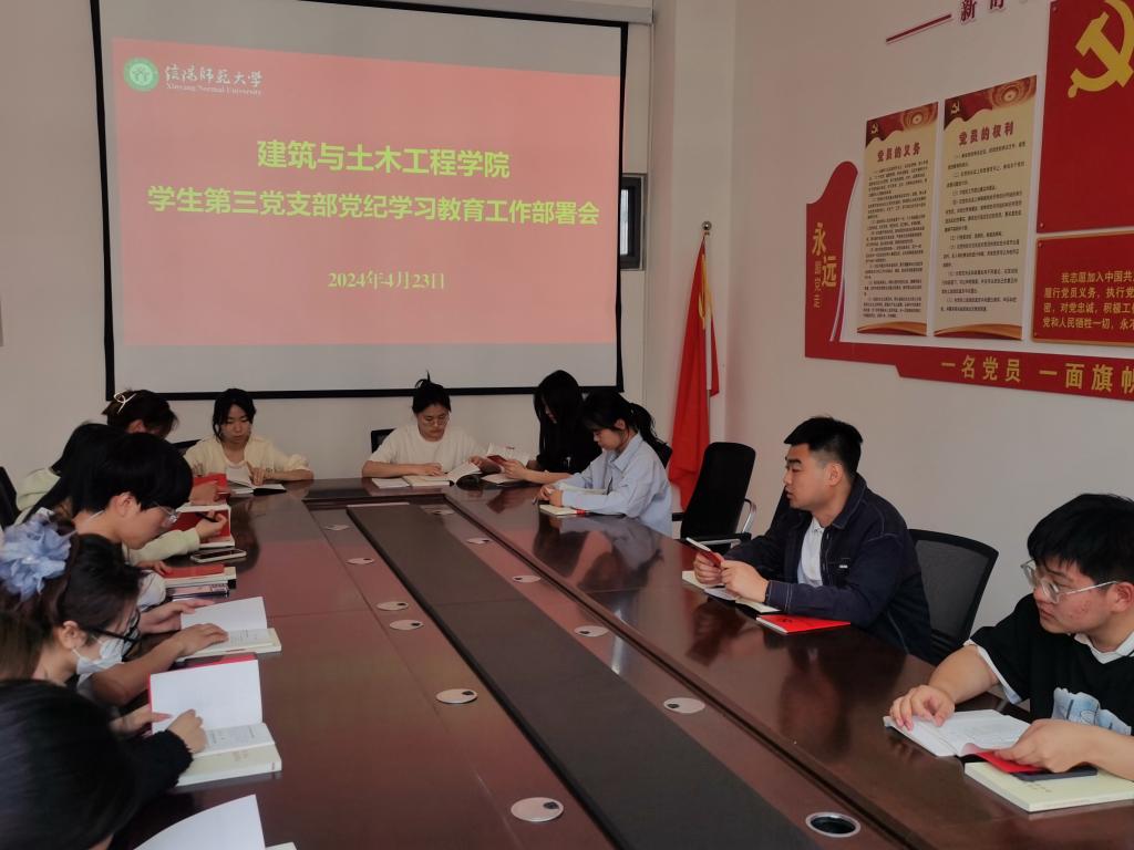 学生第三党支部在学院楼402召开党纪学习教育工作部署会,支部全体党员参加会议。