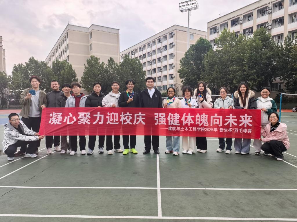 在东操场成功举办2025级新生羽毛球赛。学院团委书记冯舒心老师与2025级参赛学生共同参加此次活动。