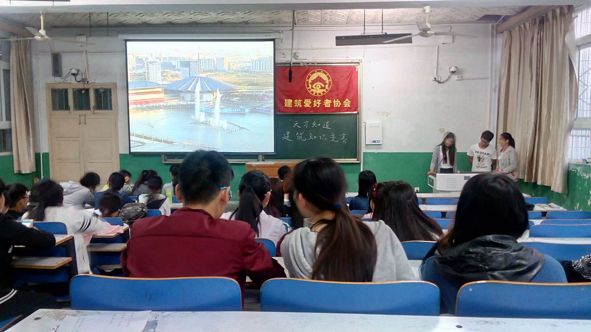 (本网讯 洪慧慧 赵艳 李豹)为提高建筑文化素养,5月15日晚,建筑爱好者协会在教二楼第四阶梯教室成功举办了第三届“天才知道”建筑知识比赛的初赛。