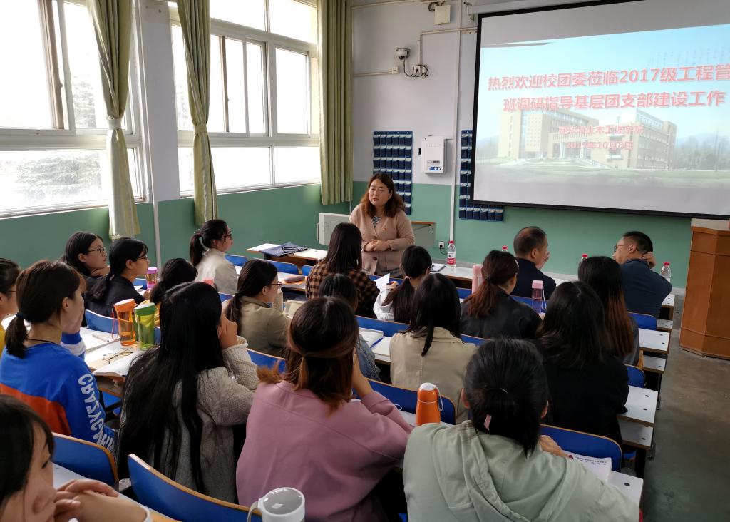 为了进一步加强学校基层团组织阵地建设,真正打通基层团组织与青年最后一公里障碍,校团委书记王建旭一行于10月8日上午深入我院2017级工程管理班开展了基层团组织建设主题座谈会,会议由学院党委副书记方明科主持。