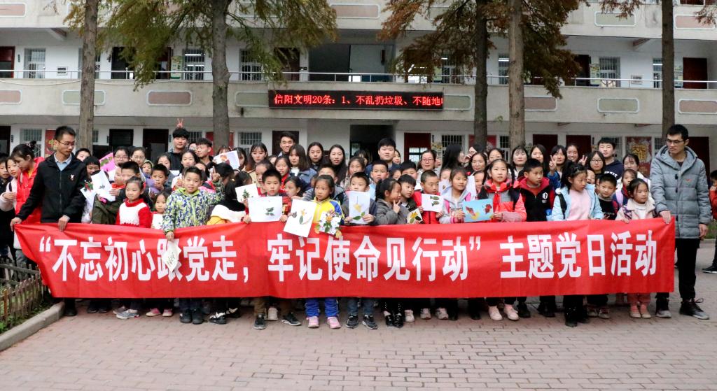 组织师生代表赴信阳市平西小学开展了“不忘初心跟党走、牢记使命见行动”主题活动,学院全体党支部书记、学生党支部党员代表、谭山青年志愿者协会代表、共计40余人参加了本次活动。