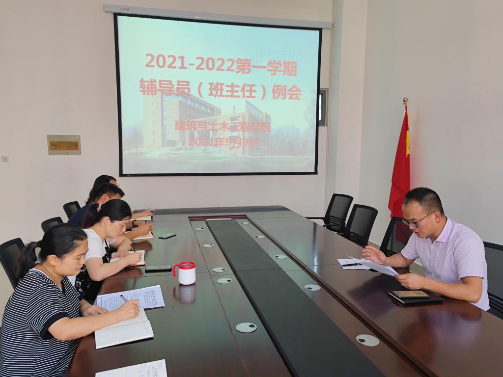 在综合实验楼402召开2021-2022学年第一学期辅导员(班主任)例会。学院党委副书记冀鹏主持,全体辅导员和兼职班主任参会。