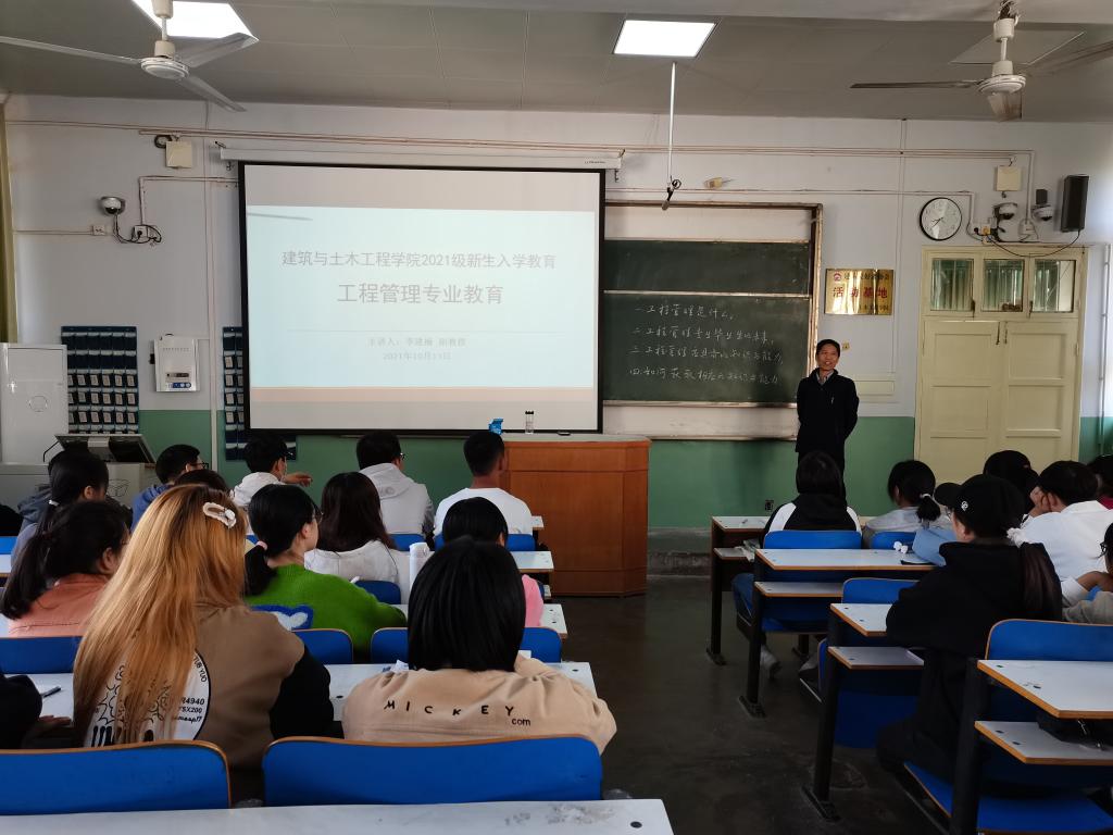 2021级新生入学教育工作安排,10月13日上午,学院邀请工程管理系主任、副教授李建楠老师在教二T5教室为2021级新生作工程管理专业认知专题辅导。学院党委书记方明科、副书记冀鹏与2021级工程管理专业新生一起聆听了辅导报告。