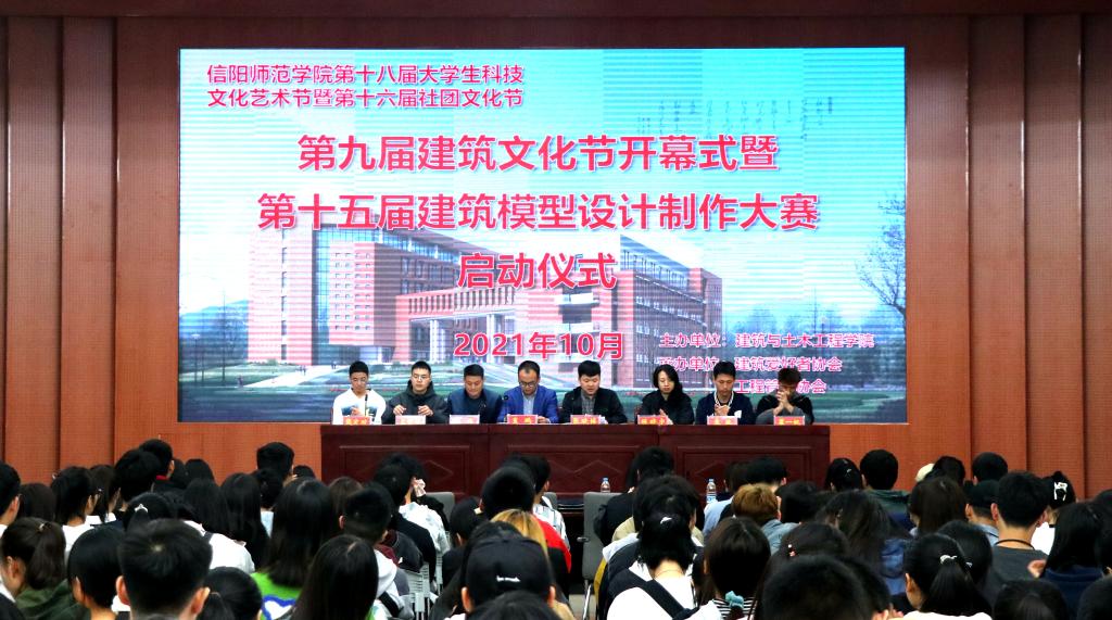 在逸夫楼报告厅举办了第九届建筑文化节开幕式暨第十五届建筑模型设计制作大赛启动仪式。建筑土木工程学院党委副书记冀鹏、团委书记张晓博、建筑爱好者协会指导教师张伟、新生班主任陈晓宇以及200余名社团成员共同参加了本次会议,会议由张晓博主持。