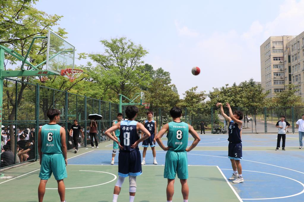 4月20日中午,信阳师范学院“谭山杯”小组赛第八天,木瓜视频 男篮对阵音乐与舞蹈学院。