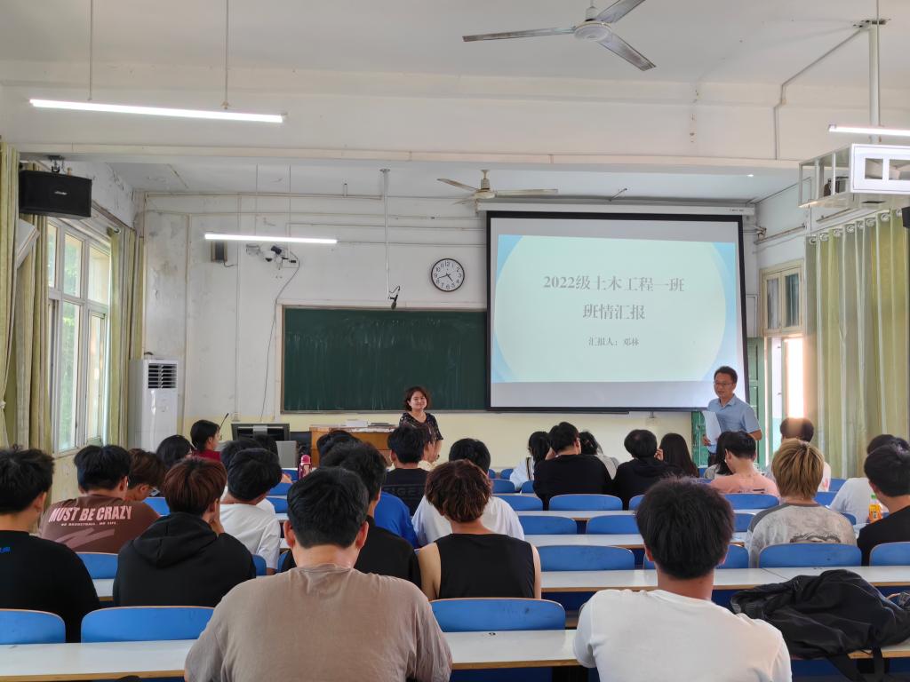 专职辅导员邓林,在教3楼311教室组织2022级土木工程本科1班召开了班情熟知主题班会,大学生心理健康辅导中心李贵杰主任、蔡冰心老师莅临指导,学院党委副书记冀鹏、全体专兼职班主任参会。