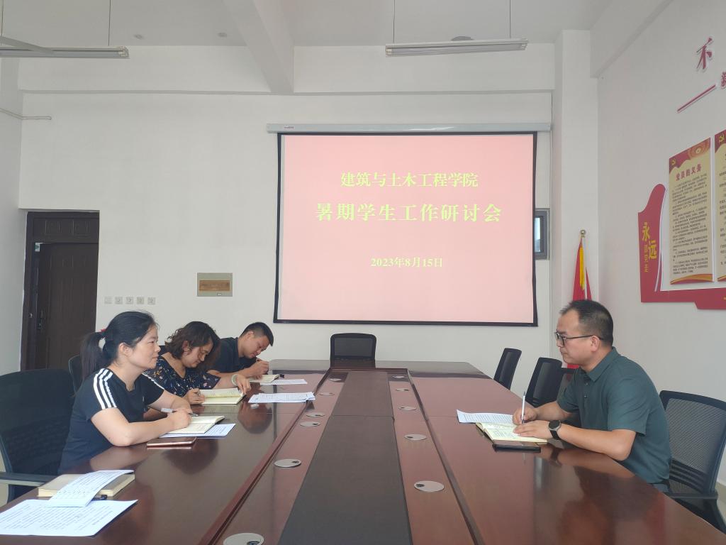 在综合实验楼402会议室召开暑期学生工作研讨会。学院党委副书记冀鹏和全体专兼职辅导员参加会议。