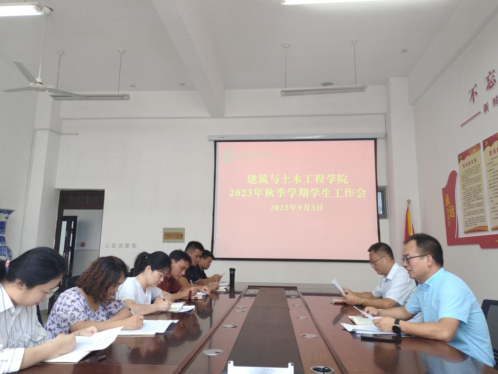 在综合实验楼402召开2023年秋季学期学生工作会,学院党委书记方明科、党委副书记冀鹏和全体专兼职辅导员参加会议。