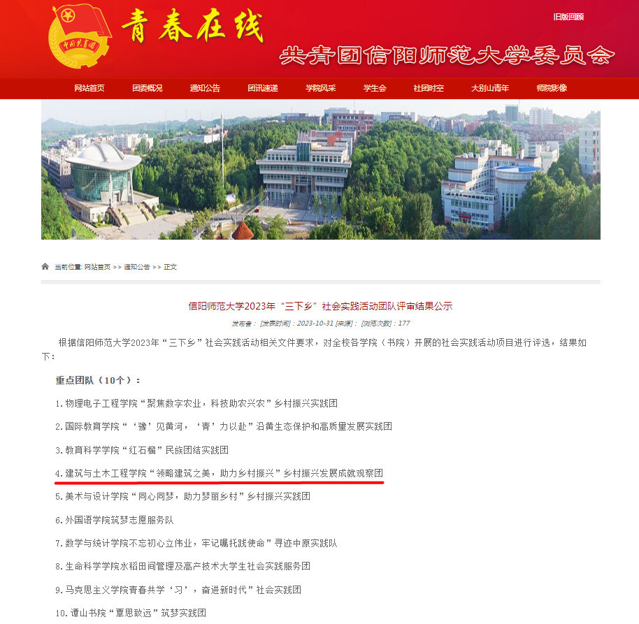 近日,木瓜视频 2023年“三下乡”社会实践活动评审会公布评审结果,我院的“领略建筑之美,助力乡村振兴”乡村振兴发展成就观察团被评为重点团队。