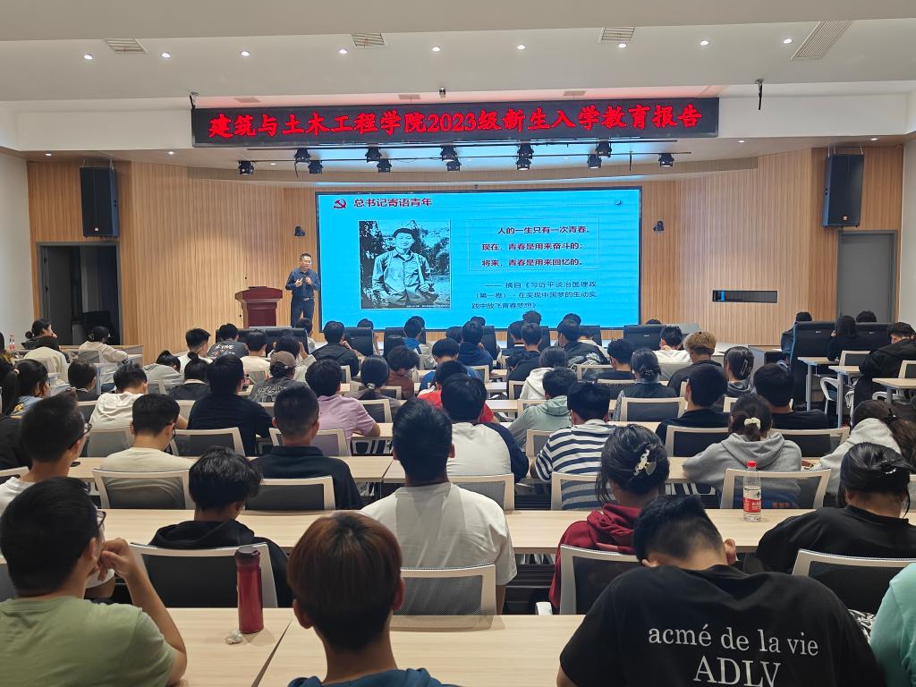 党委书记方明科在谭山书院博雅讲堂为2023级新生作题为《仰望星空,脚踏实地》的入学教育辅导报告。学院党委副书记冀鹏、新生班主任冯舒心及2023级全体新生参加报告会。