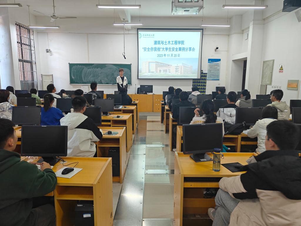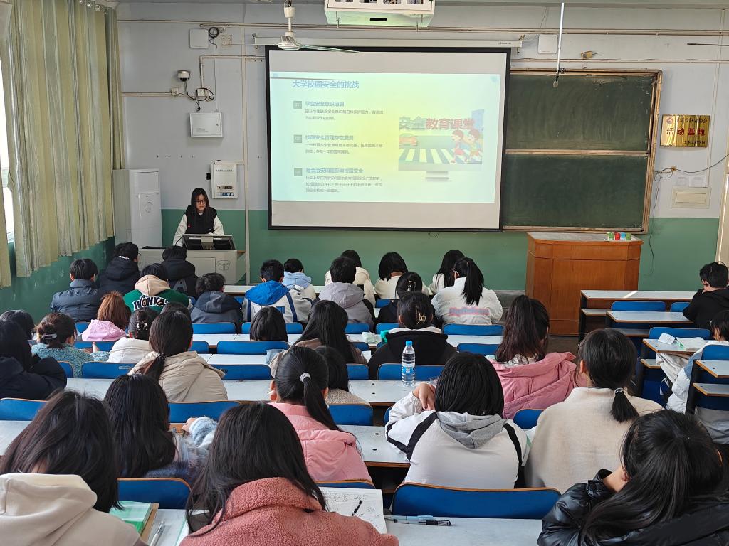 2023级各班举办“安全你我他”安全案例分享会,学院团委老师冯舒心和2023级新生参加活动。