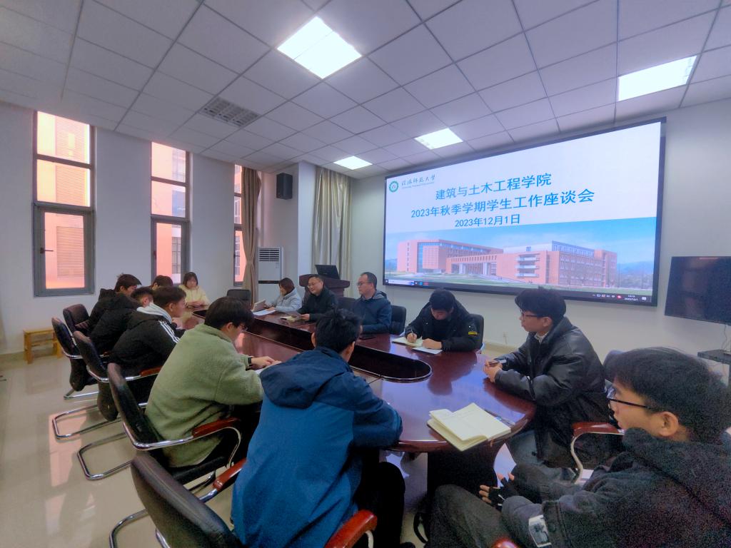 在土木楼206会议室召开2023年秋季学期学生工作座谈会,学院党委书记方明科,党委副书记冀鹏,专职辅导员张海燕、邓林、冯舒心,以及来自各班级、社团、学生会的30余名学生代表参加座谈会。