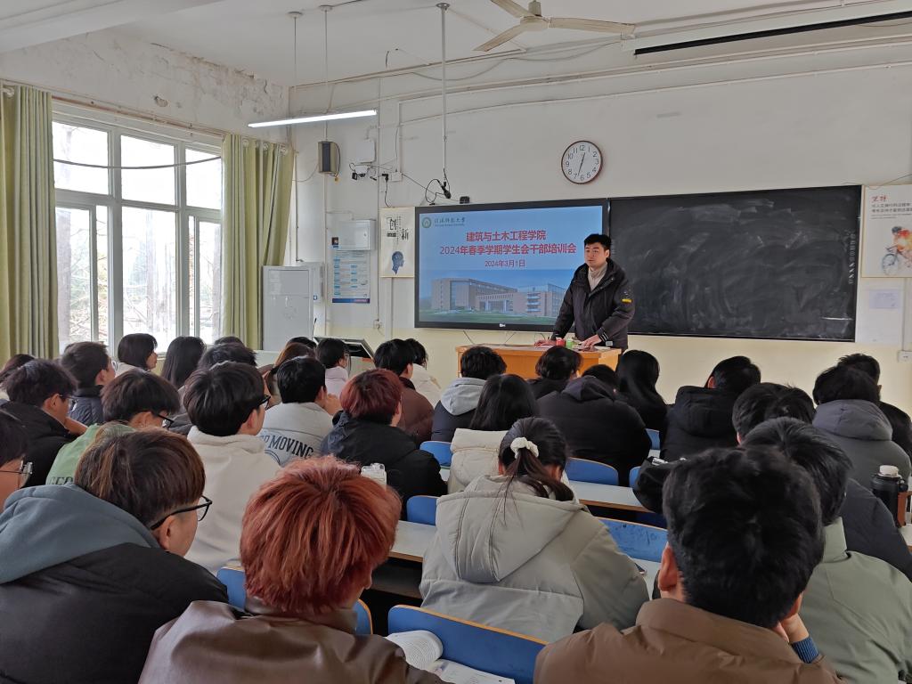 在教三12召开2024年度第一次学生会(社团)全会暨春季学期学生会干部培训会,学院党委副书记冀鹏,学院团委老师冯舒心,学生会、社团全体人员及各班级班长、团支书参加会议。