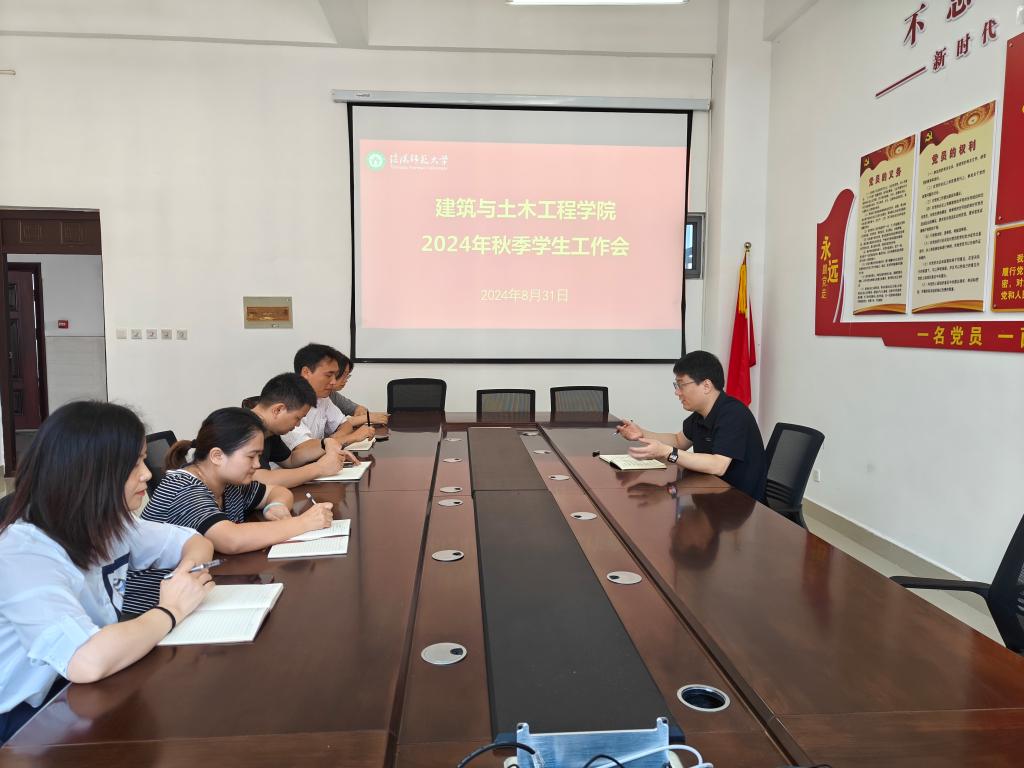 在综合实验楼402会议室召开2024年秋季学生工作会,学院党委副书记王凯和全体专(兼)职辅导员、班主任参加会议。