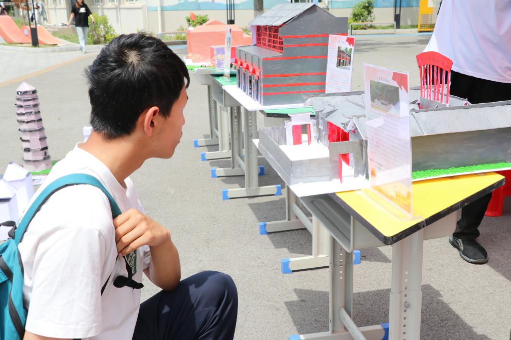 活动当天,这10余座制作精美的建筑模型在心语广场错落有致地陈列展示,还配以图文并茂的展板,全方位呈现红色建筑的相关信息。学生讲解员们围绕每座建筑的历史背景、独特的建筑特色以及深刻的革命意义,为参观者进行了细致的导览讲解,生动地还原了建筑背后的党史故事,让参观者仿佛置身于那段波澜壮阔的历史岁月。在活动现场,同学们还围绕“传承红色基因,争做时代先锋”这一主题,结合自身的学习和生活实际,积极分享了对五四精神的理解与感悟,以及在新时代如何将个人成长与国家发展紧密结合的思考。