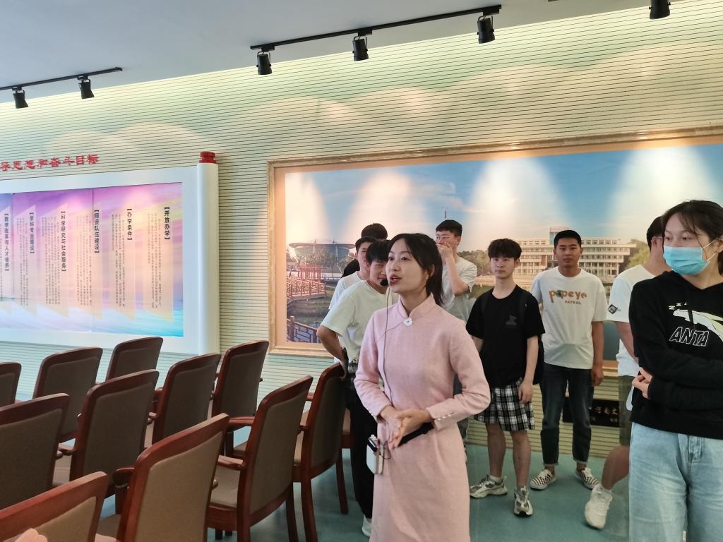 在讲解员的带领下,参观从刻有“教师之摇篮”的巨型浮雕前开始。讲解员结合文史资料和照片,生动讲解了学校建校以来,特别是近四十年来的发展历程、办学理念和办学成果。在一座座奖杯,一张张证书面前,同学们更加深刻得了解到学校在科学研究、精神文明建设等方面取得的成果。校友风采的展示激励着同学们向先进学习,扬帆万里,勇攀高峰,争做勇担当,敢作为的社会主义新青年。最后,参观在悠扬的琴音和优雅的茶艺表演中结束。