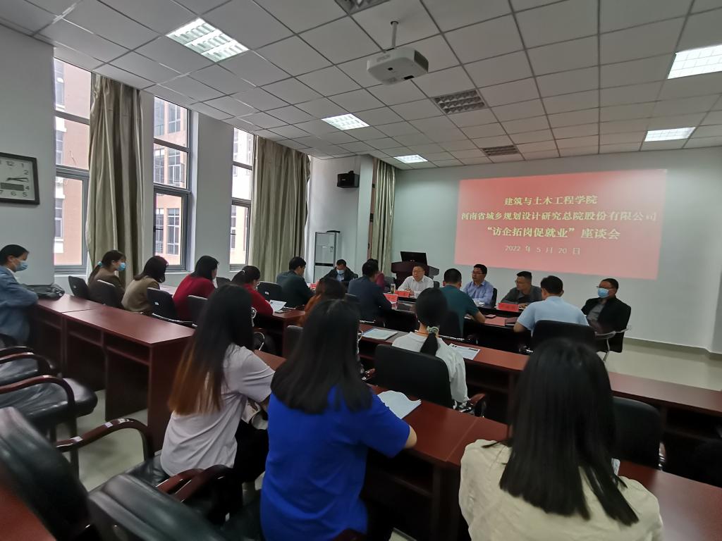 与河南省城乡规划设计研究总院股份有限公司在土木楼206会议室召开“访企拓岗促就业”座谈会。河南省城乡规划设计研究总院股份有限公司信阳院院长张军、建筑所所长梁旺、木瓜视频