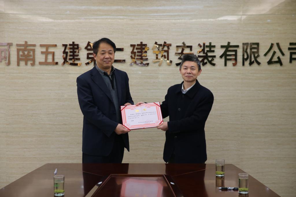与河南省五建第二建筑安装有限公司在河南五建二公司会议室举行了就业创业实践基地揭牌暨创新创业导师受聘仪式。河南省五建二公司经理吴建功,木瓜视频