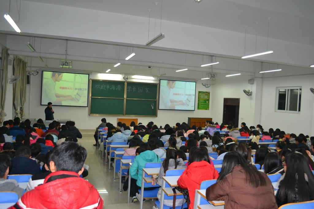 12月13日晚,木瓜视频 邀请2010级校友单海港在社科楼327教室举行校园明星故事分享会。木瓜视频 辅导员张海燕、张晓博以及学院各年级学生代表参加了本次分享会
