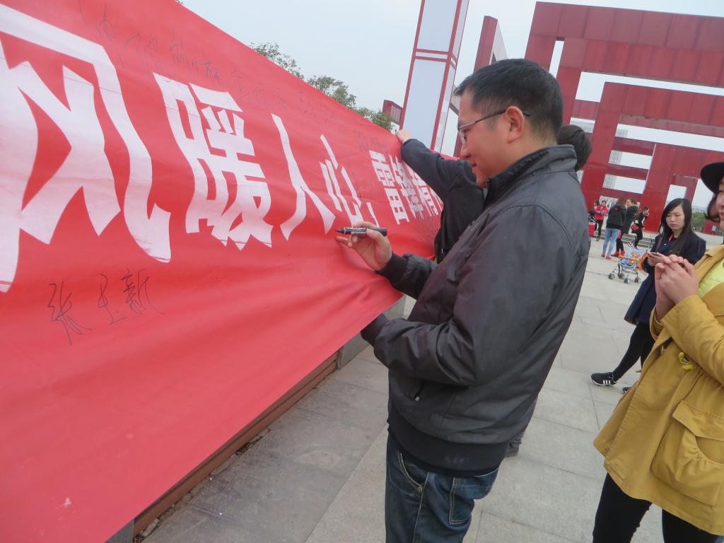 此次活动的主要流程分为三项,一是向路人发放新媒体自制的樱花书签,书签上印有宣传雷锋精神的经典语录,“但愿每次回忆,都对生活不感到负疚,我愿做高山岩石之松,不愿做湖畔河旁之柳”;二是义务劳动,携带劳动工具,对百花园进行义务打扫;三是进行签名活动,积极号召路人在印制的条幅上签字,并进行合影留念。