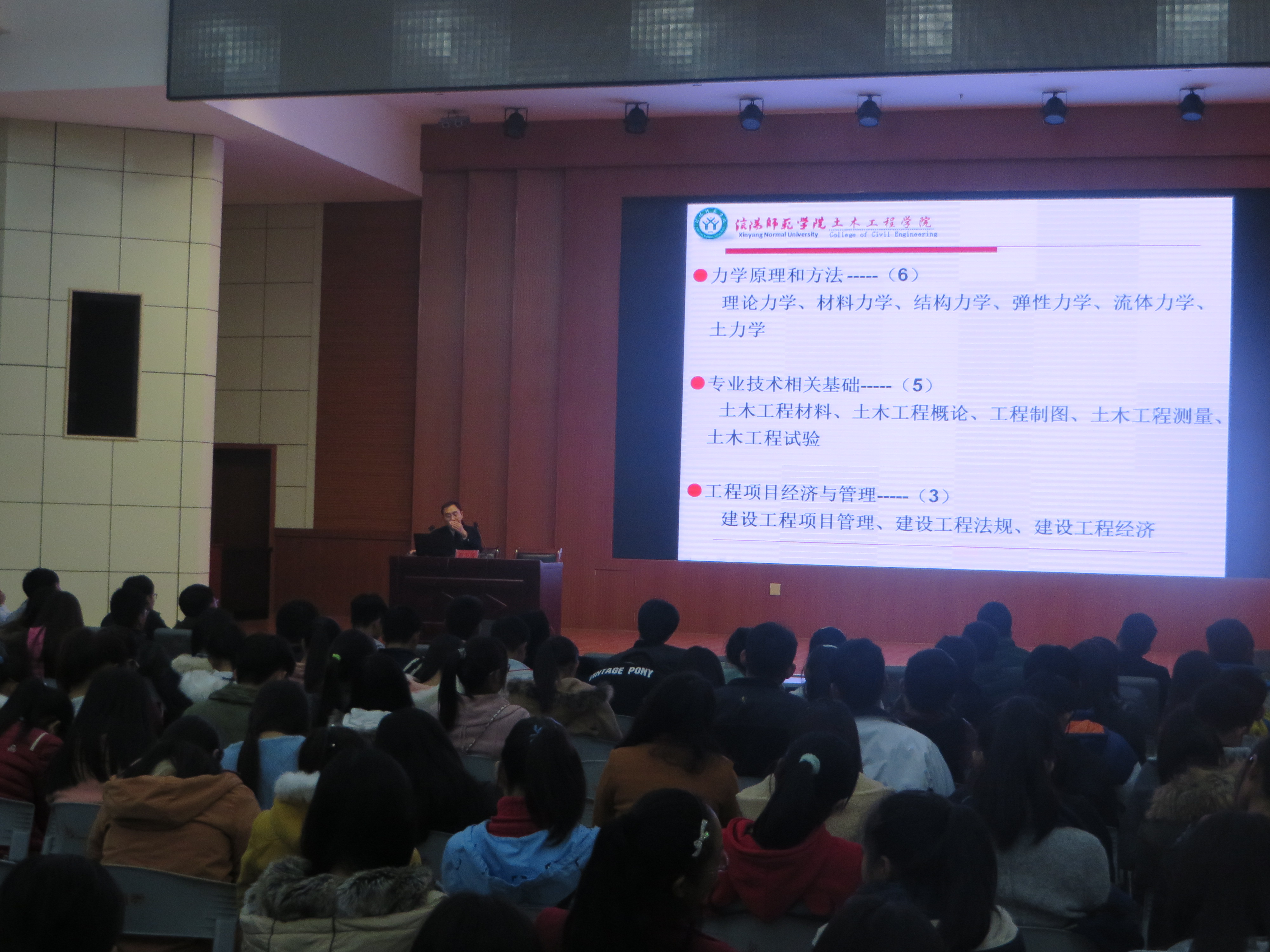 (本网讯 孙宇 艾晓雪 赵艳)11月7日晚7点,土木工程学院新生入学系列教育报告会在逸夫楼报告厅如期举行。土木工程学院副院长高洪波为主讲人,团总支老师秦丹丹,张伟以及2015级全体新生参加此次报告会,报告由团总支书记冀鹏主持。