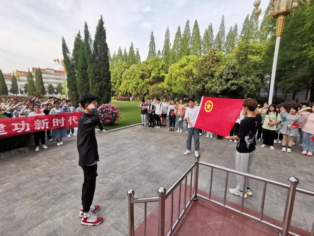 在明德广场举行“国旗下的礼赞——青春心向党,建功新时代”主题升旗仪式。