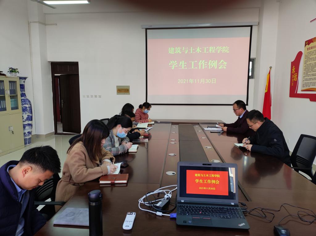 在综合实验楼402会议室召开学生工作会。学院党委书记方明科、副书记冀鹏和全体专兼职辅导员(班主任)参加会议。会议由冀鹏主持。