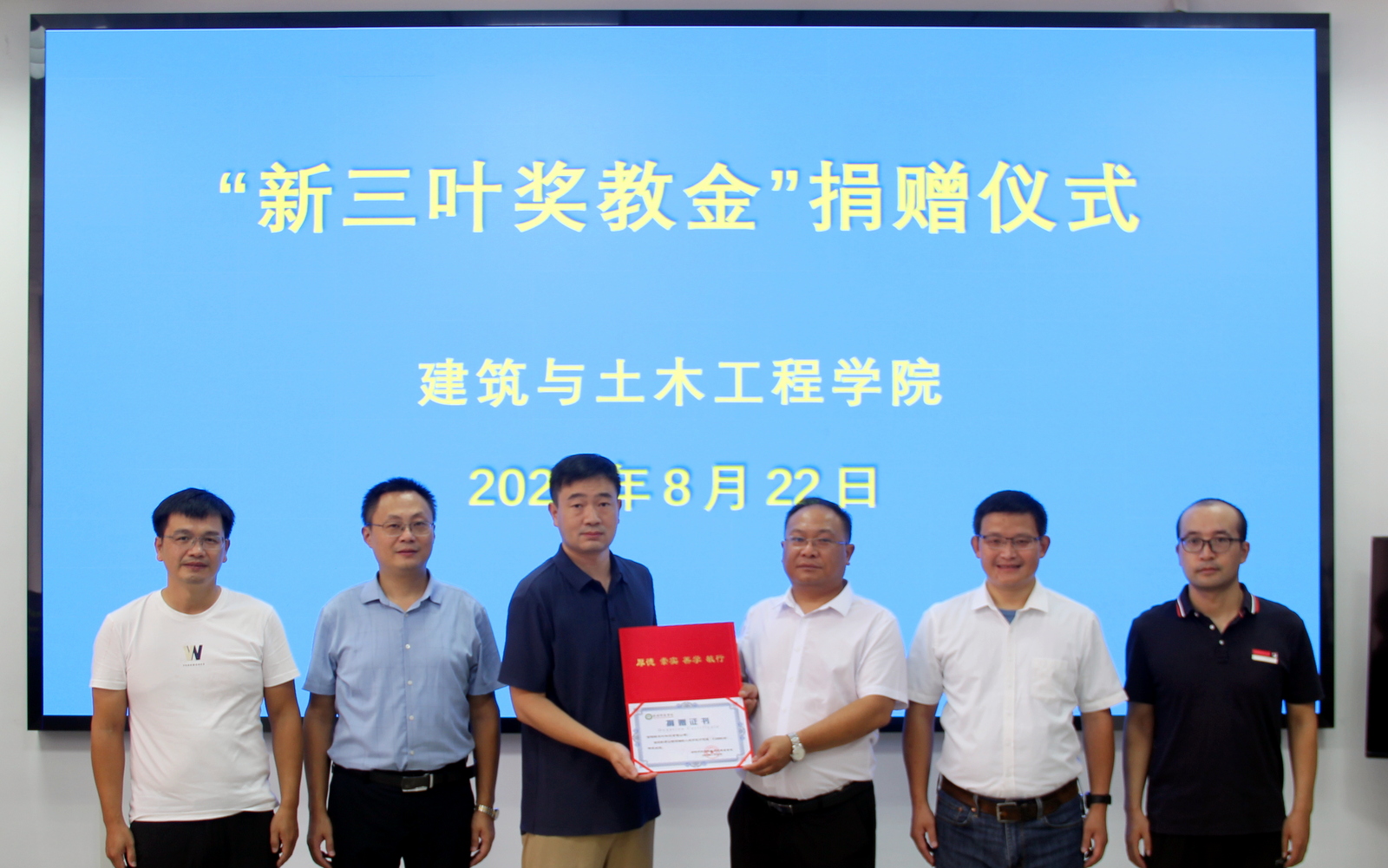 8月22日下午,信阳新三叶科技有限公司奖教金捐赠仪式在木瓜视频 206会议室举行。信阳新三叶科技有限公司总经理王锡均、技术经理张云帆,木瓜视频 党委书记方明科、院长周葆春、副院长肖琪聃、科研秘书马文强参加了捐赠仪式。